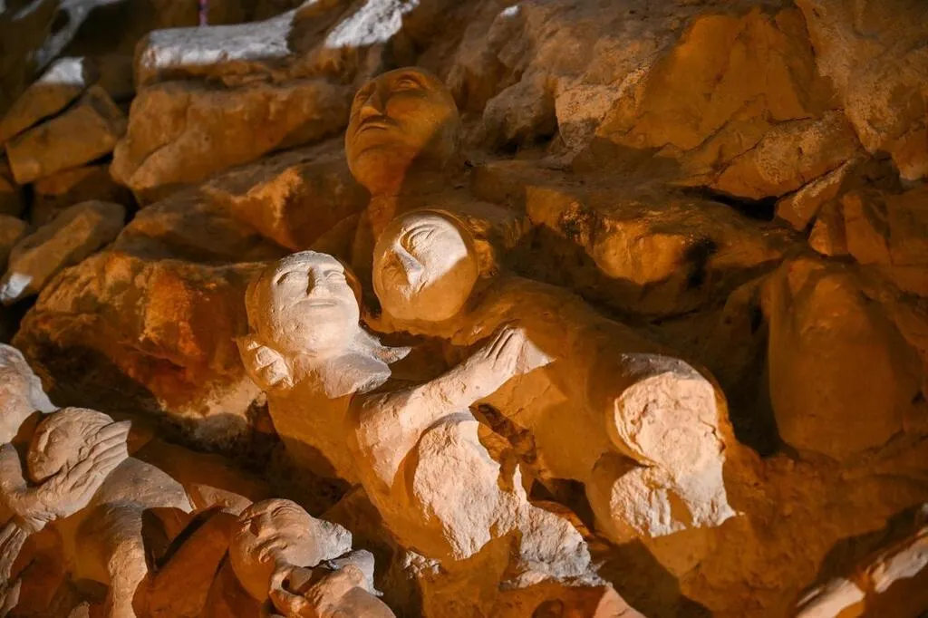 Située dans le village de Dénezé-sous-Doué (à 20 km de Saumur, en Maine-et-Loire), une gigantesque fresque souterraine en tuffeau représente 200 personnages humains. Sculptée vers la fin du XVIe siècle, elle dénoncerait les horreurs des Guerres de religion en Anjou. Son accès a longtemps été interdit et son existence tenue la plus secrète possible. Aujourd’hui, une association cherche à mieux la faire connaître.