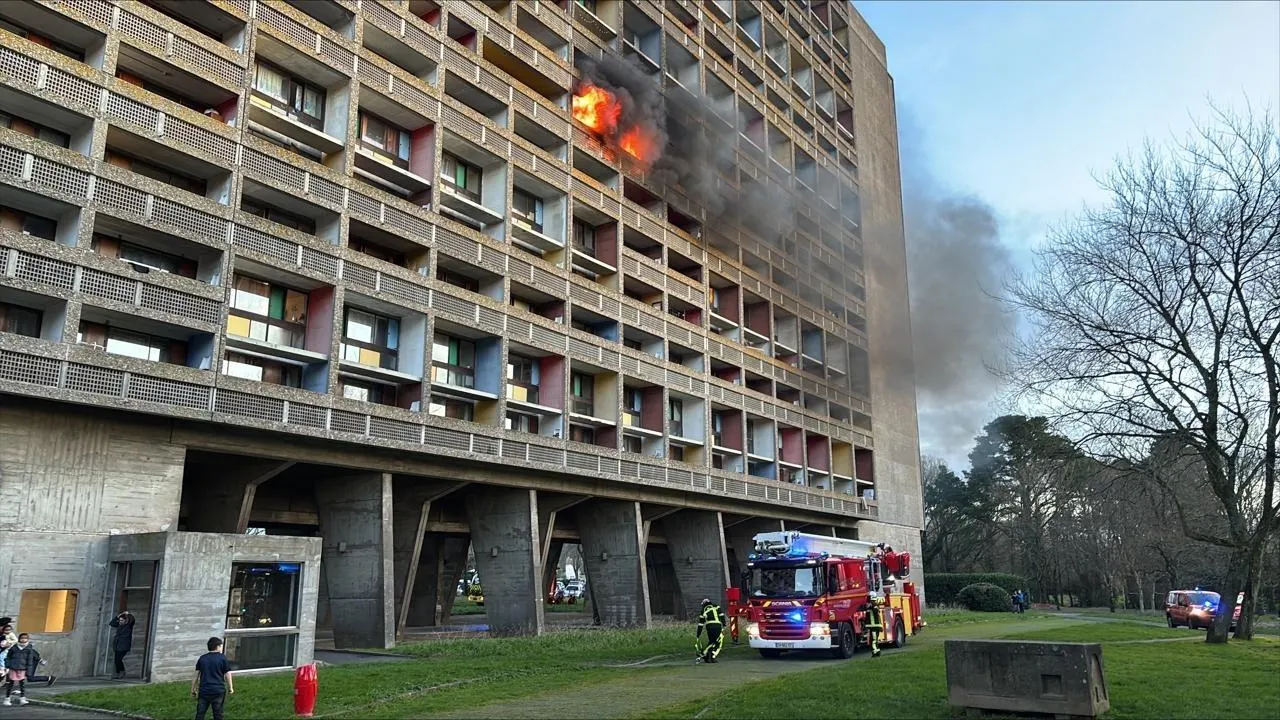 17 h 25, ce vendredi 2 janvier, les sapeurs-pompiers arrivent à la Maison radieuse à Rezé (Loire-Atlantique) : un incendie vient de se déclarer dans le bâtiment, conçu par Le Corbusier et classé à l’inventaire des Monuments historiques.