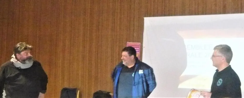 Le président Denis Fallempin, de la FAM accueilli par Tierry Colas président et Alain Picard le chef de la Péquila a Banda.