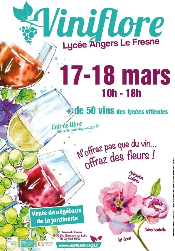 Viniflore, c'est les 17 et 18 mars 2018 de 10 h à 18 h au Lycée Angers Le Fresne. N'offrez pas que du vin... Faites également le plein de végétaux !