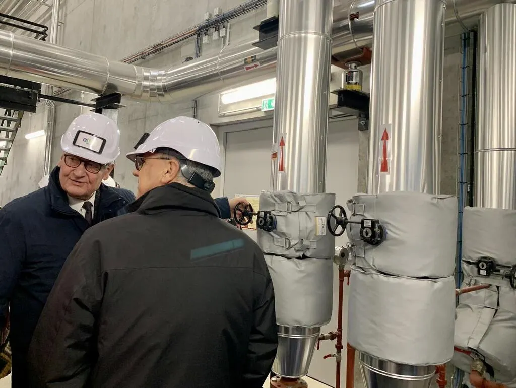 Jean-Marc Verchère et Philippe Chopin étaient présents à l’inauguration du nouveau réseau de chaleur urbain de Monplaisir, ce mardi 19 décembre 2023 à Angers (Maine-et-Loire). © Ouest-France