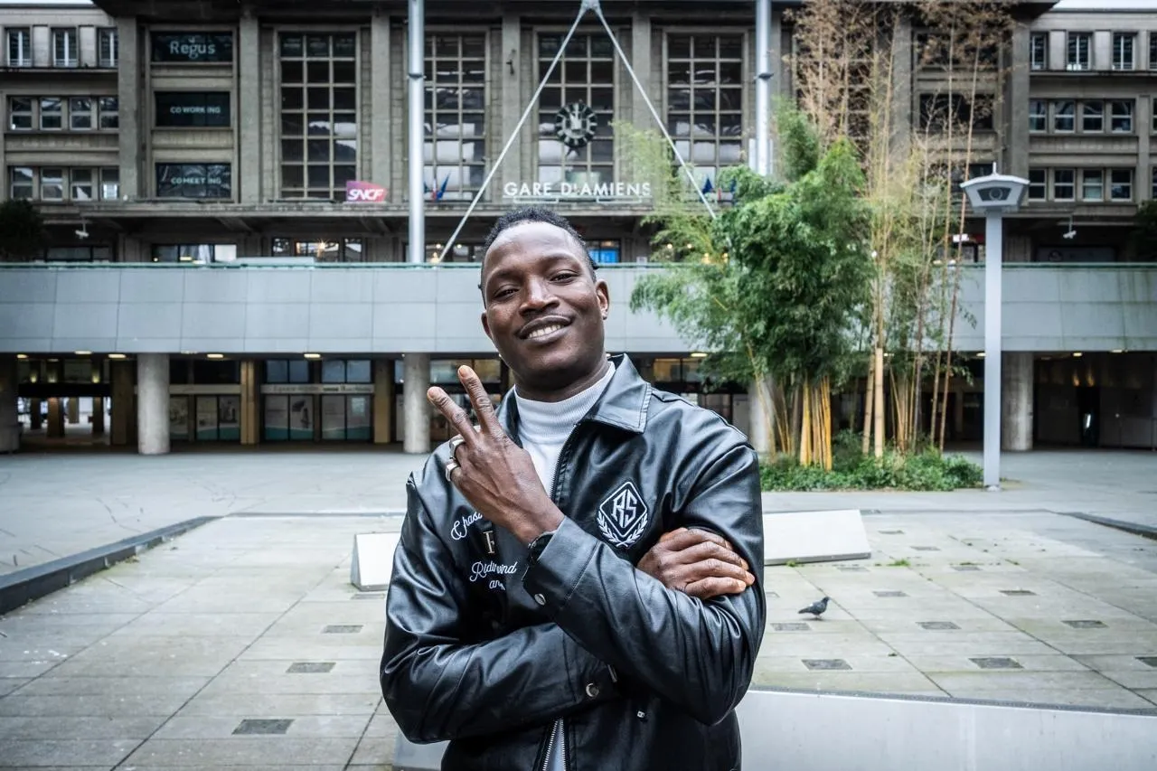 Abou Sangaré devant la gare d’Amiens. Chaque jour, le jeune homme prend son train pour aller travailler à Paris dans un tout autre domaine que le cinéma. © Nicolas Montard / Ouest-France