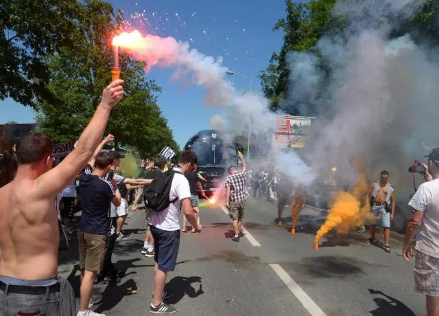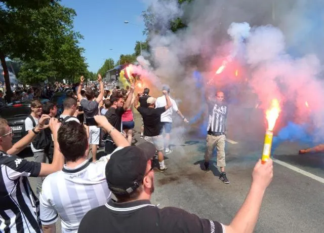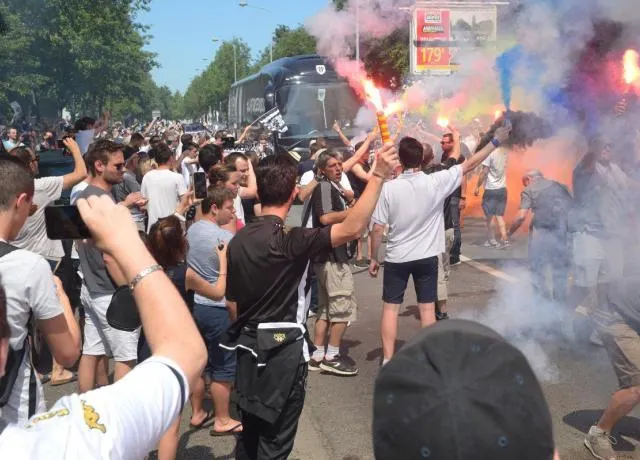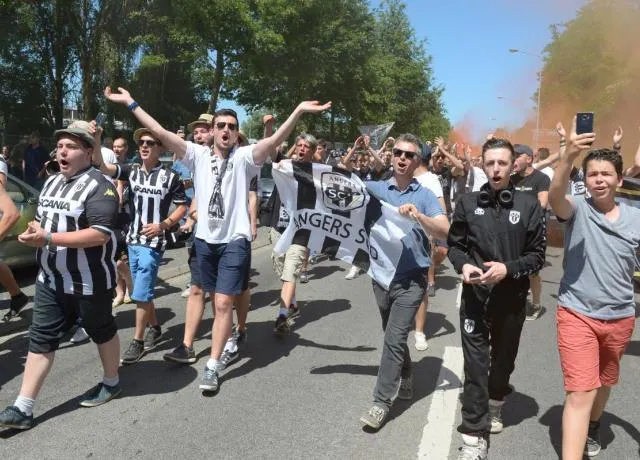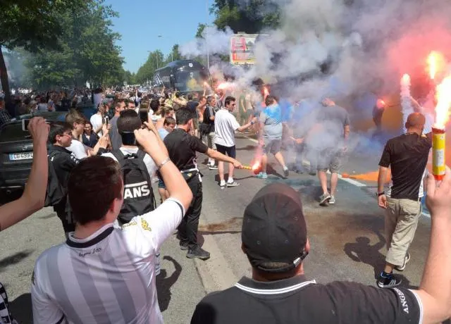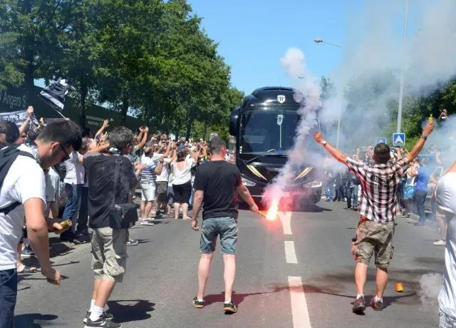 Les supporters angevins que l'ont décrit souvent comme plutôt calmes et tempérérs, comme leur ville, ont décidé de faire monter la température d'un cran ce jeudi pour le départ du bus de leur équipe vers Paris.