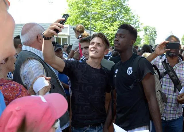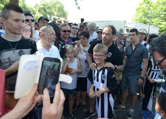 La procession angevine vers l'hôtel de Rueil-Malmaison a mis un certains temps à se mettre en branle. Joueurs et dirigeants savourant cet instant de liesse populaire.