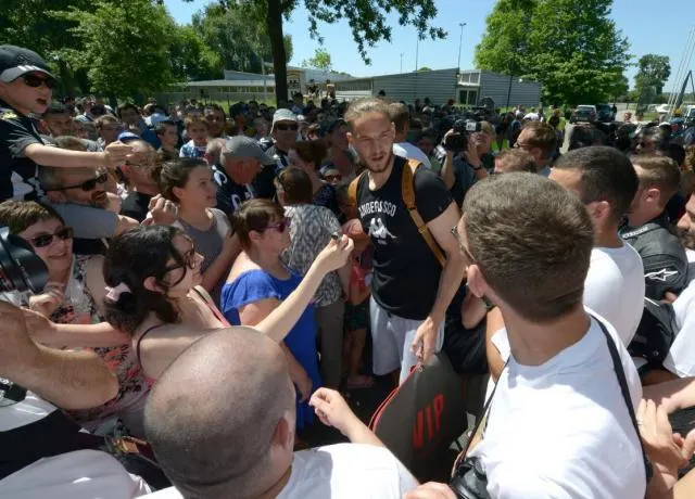 Un millier de supporters sont venus acclamer leurs idoles, leur montrer trout leur soutien avant l'immense défi qui les attend samedi soir au Stade de France. Chaque joueur qui montaient dans le bus a dû fendre une foule dense et bon-enfant et se prêter au jeu des selfies.