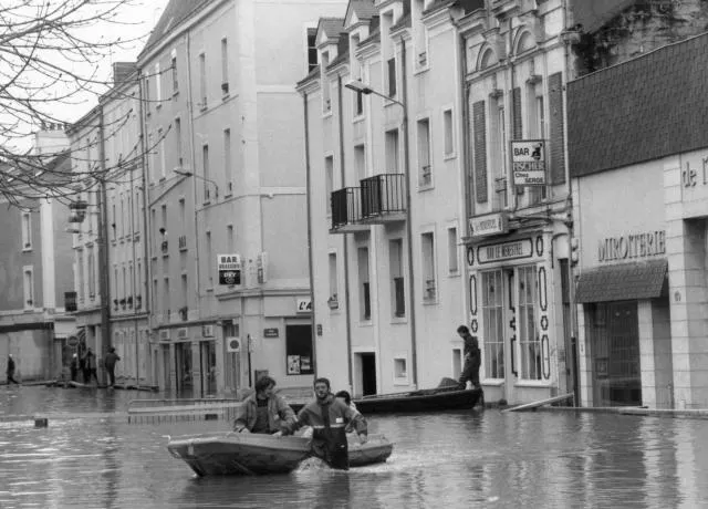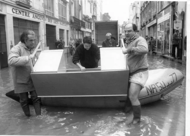 Angers se tranforme en cité lacustre. Deux canots de la Société nationale de sauvetage en mer (SNCM), ont été réquisitionnés par la préfecture et jouent les bâteaux-taxis pour transporter les Angevins. La ville aménage des trottoirs sur des madriers posés sur des parpaings.