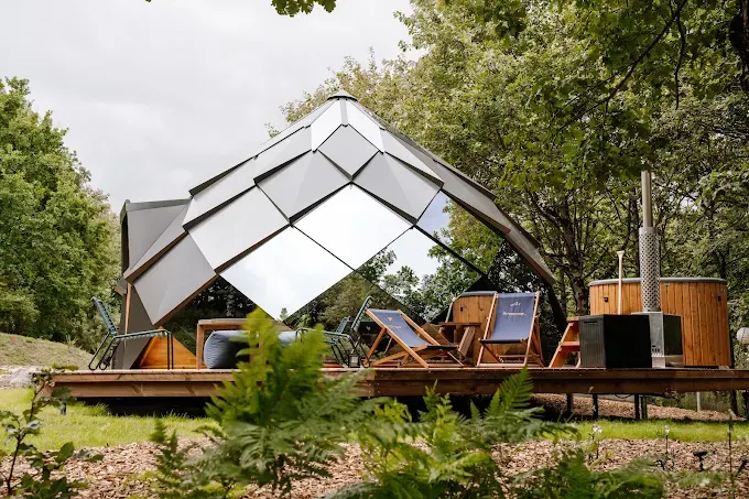 Le Domaine Toucan s’étend sur 4 hectares de nature préservée, offrant un cadre ressourçant avec une mare, un étang, des sentiers boisés et un potager. Leur premier écolodge, le Zome, se distingue par son architecture géométrique en losanges vitrés, offrant un contact direct avec la nature et une vue imprenable sur les étoiles depuis le lit en mezzanine. Ce logement élégant et moderne dispose également d’un bain nordique privatif chauffé au poêle à bois, pour une expérience de détente exceptionnelle.