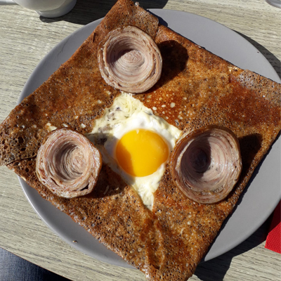 L’andouille, une galette à l’andouille de Guéméné accompagnée de pommes rissolées au beurre