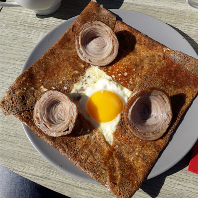 - L’Incontournable Galette Complète, jambon blanc, emmental et œuf miroir