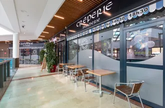 Située au premier étage de la galerie commerciale de Grand Maine, la crêperie est aussi accessible aux personnes à mobilité réduite.