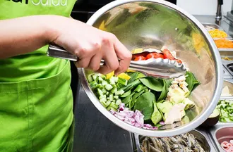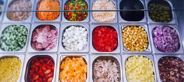 Pour composer leur salade, les clients peuvent choisir entre une dizaine de bases (mâche, roquette, fusili, quinoa…), 36 ingrédients frais (avocat, oignons rouges, maïs, jambon, thon, crevettes, emmental..) et pas moins de 8 sauces maison (moutarde, olive citron, pesto, ranch…). Les possibilités sont infinies et chacun pourra trouver son bonheur et composer sa salade idéale !