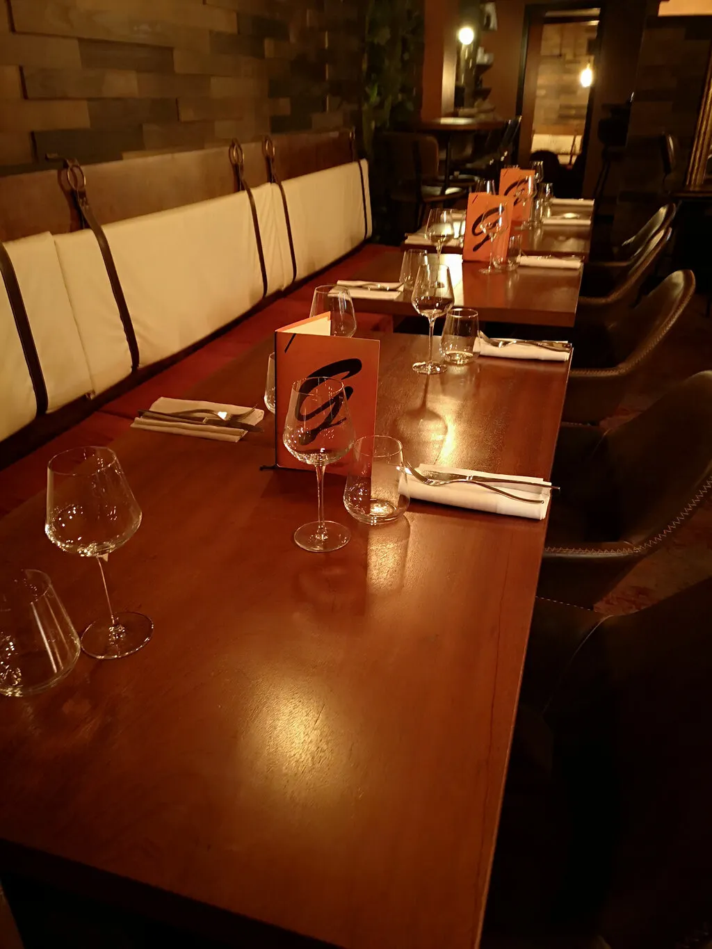 Le Gustave est un restaurant ni trop grand ni trop petit, décoré avec passion en utilisant des matériaux bruts. Bois, fer, cuivre mais aussi un arbre exotique pour le bar, les tables, les étagères… Le tout dans une ambiance cosy, chaleureuse et feutrée où vous pourrez admirer de superbes luminaires équipés d’ampoules vintages.