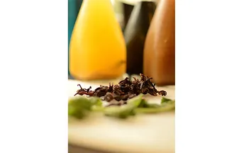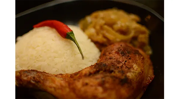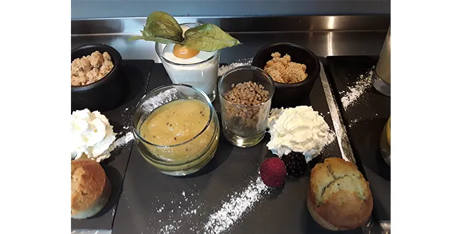 Le soir, le service est en salle avec des entrées telles que les assortiments de pastels à partager mais aussi des grillades ou des boîtes apéro. C'est de la cuisine "de maman" car le chef est gourmand et aime manger. Il fait donc partager ses passions avec une cuisine goûtée et épicée.
