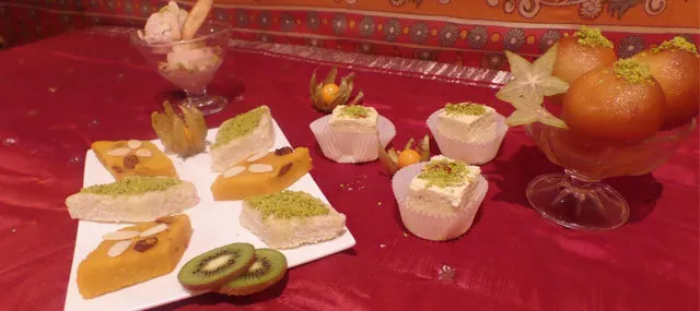 Pour que chacun puisse choisir ce qui lui convient, il y a les plats parfumés, les relevés et même les très relevés. Mais vous pourrez également déguster de délicieuses grillades, des spécialités de légumes et les enfants ont leur propre menu. Les gourmands pourront découvrir de succulentes pâtisseries indiennes faites maison comme le gâteau de noix de coco, amandes et pistaches…