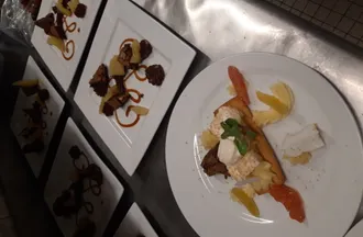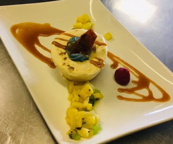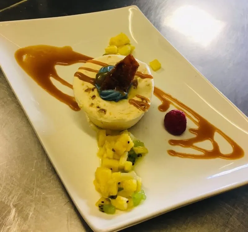 Par exemple, le poisson tient toujours une place de choix sur l’ardoise, en référence à la période où il travaillait en bord de mer. De même, il s’intéresse particulièrement à la pâtisserie et au chocolat. Cet intérêt l’a amené à participer aux championnats de France de desserts, et c’est la raison pour laquelle ses desserts se démarquent et font la différence. Son île flottante exotique est particulièrement appréciée.
