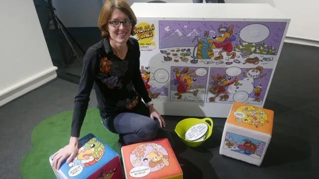 Pauline Casters avec les cubes « Oh La La Jones », une série qu’on retrouve dans « Mon premier journal de Mickey ».. © Ouest-France