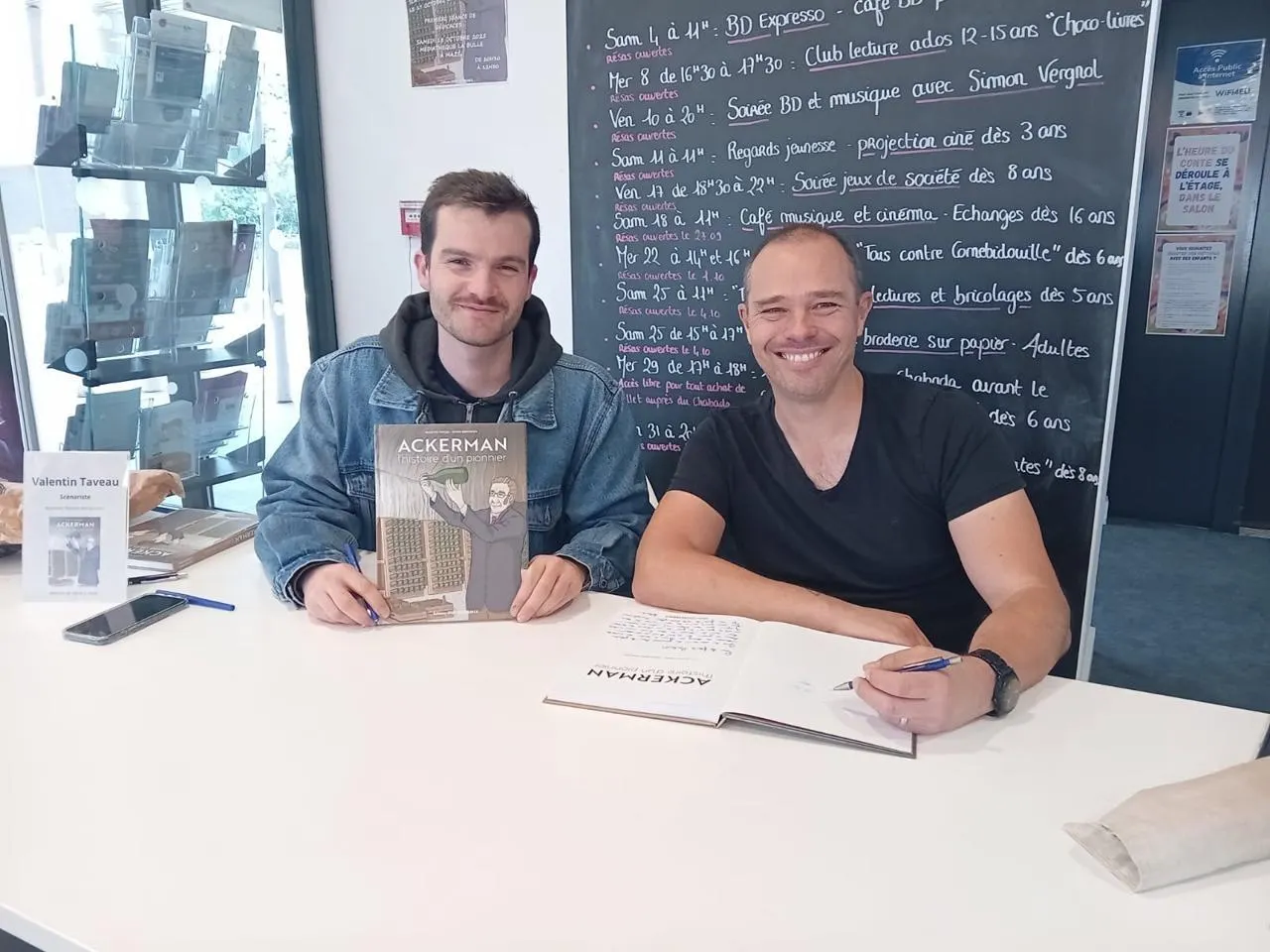 Comment traduire une thèse universitaire de 700 pages en un roman graphique cinq fois moins épais ? Valentin Taveau et Simon Bonnefoy ont la réponse. Les deux Angevins viennent de publier Ackerman, l’histoire d’un pionnier, une BD historique et captivante. Le premier a écrit le scénario, le second l’a mis en scène.