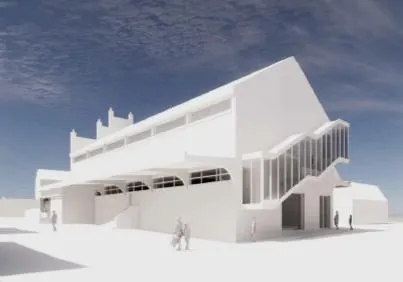 L’esquisse de la réhabilitation du cinéma qui a été choisie lors du dernier conseil municipal, avec notamment l’agrandissement en surplomb côté nord. © Linéaire A
