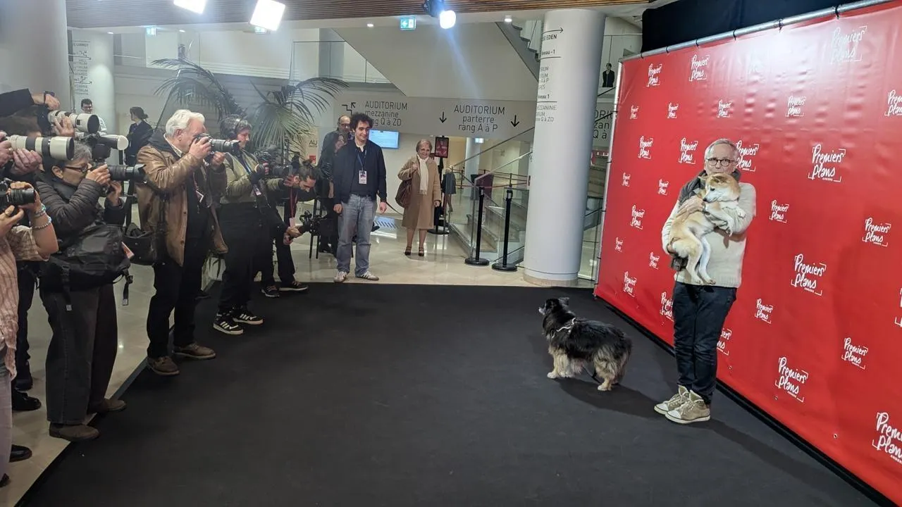 Fabrice Luchini, et ses deux chiens, face aux photographes lors de la soirée de lancement du festival Premiers plans. © Ouest-France