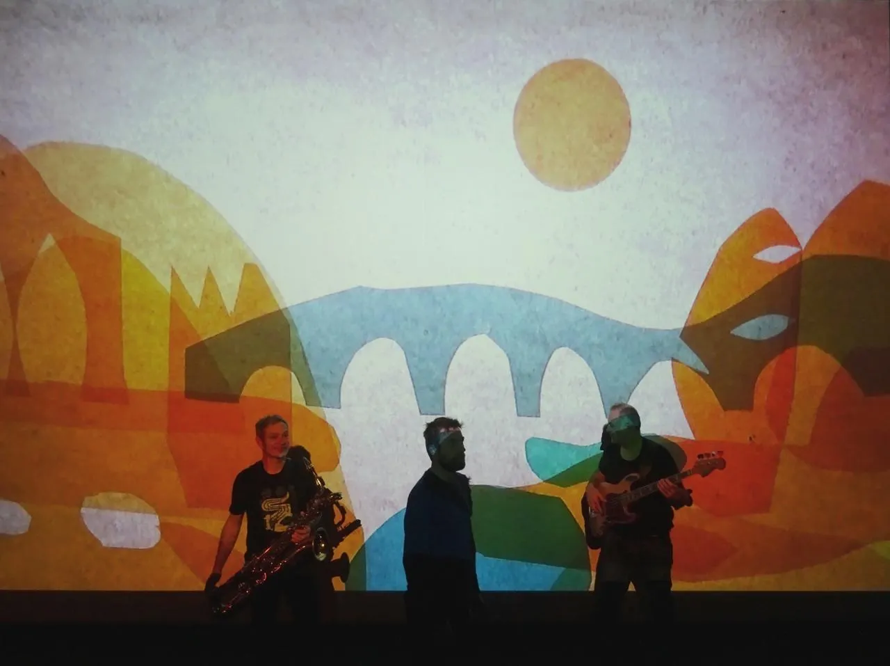 Une scène en construction, des accords de basses et de saxophones, des images projetées : à chaque spectateur d’inventer sa propre histoire, au sein de ce kaléidoscope de couleurs et de sons, très pop et vraiment apaisant.