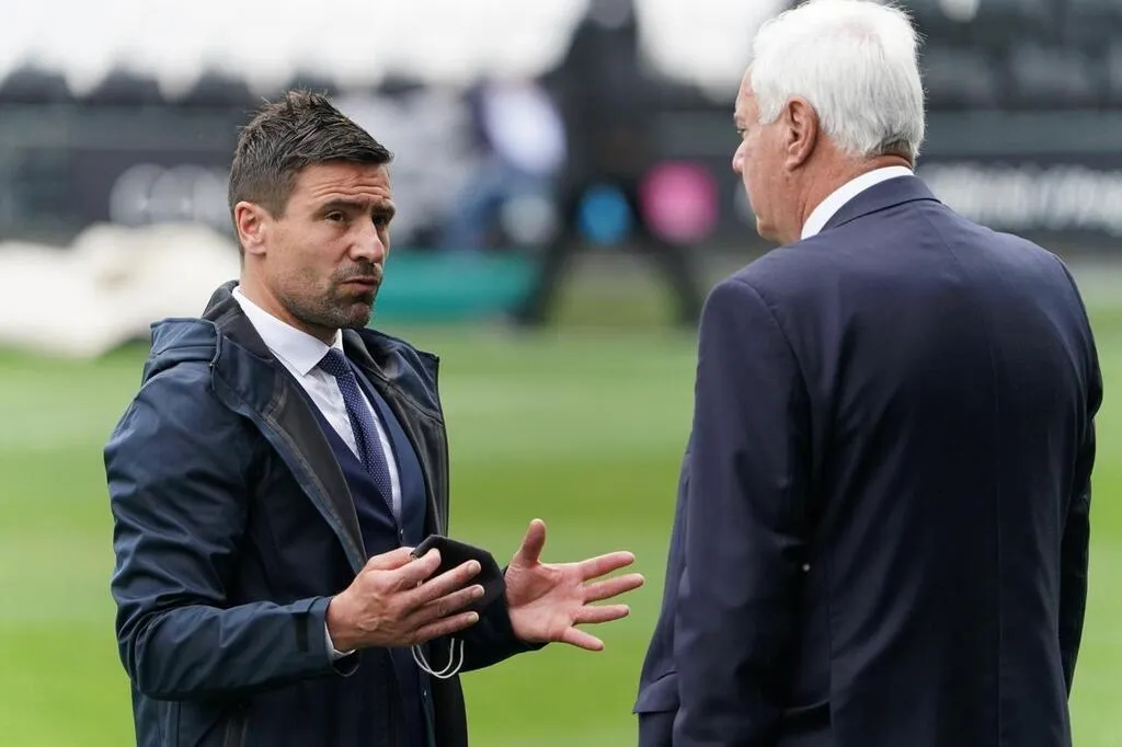 Le directeur sportif d’Angers Sco Sébastien Larcier et le président délégué Philipe Caillot. © Eddy Lemaistre