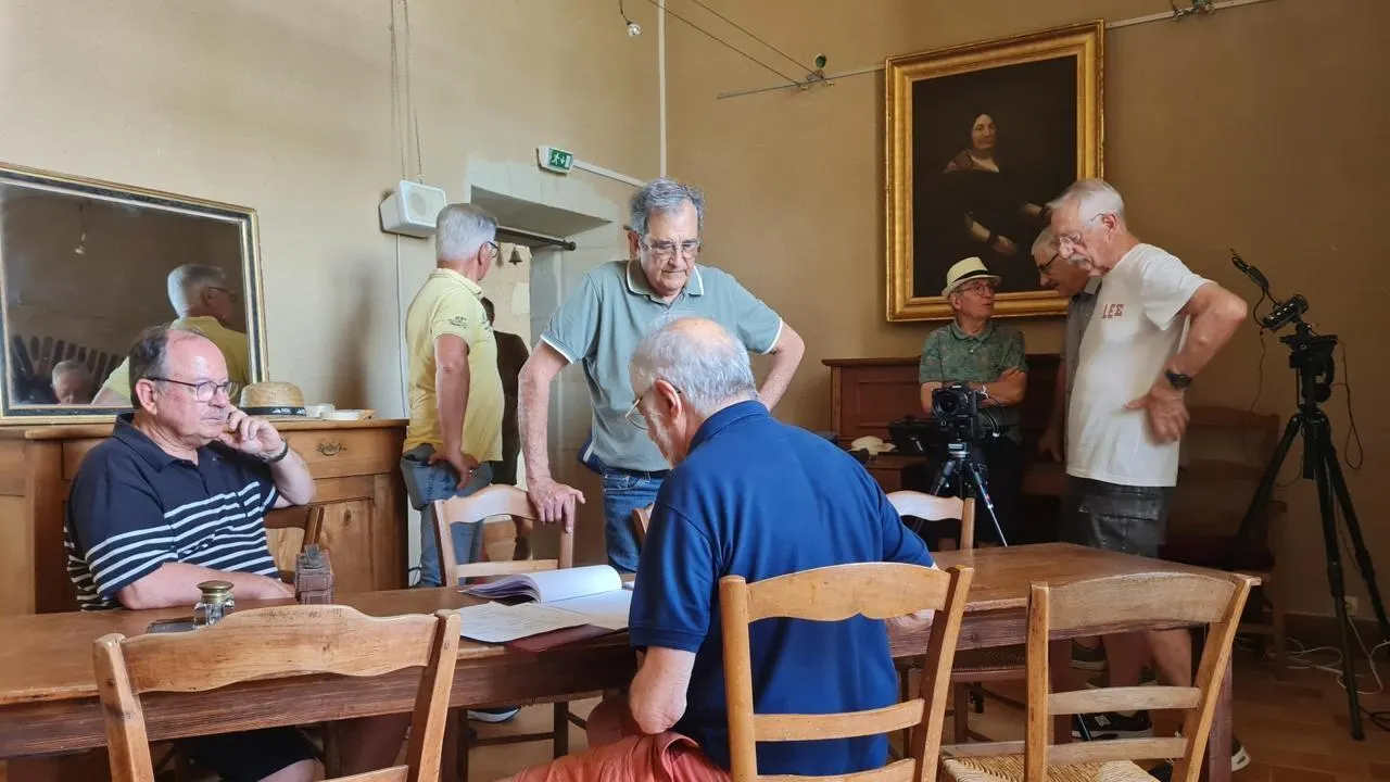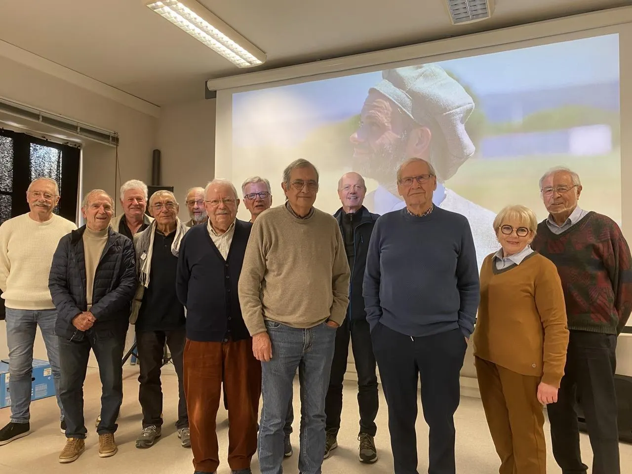 Cholet, lundi 3 novembre. Jean-Yves Daviaud, le réalisateur du film consacré à Roland Garros, entouré de membres de l’association Cholet vidéo ciné son. © CO – Julien SUREAU