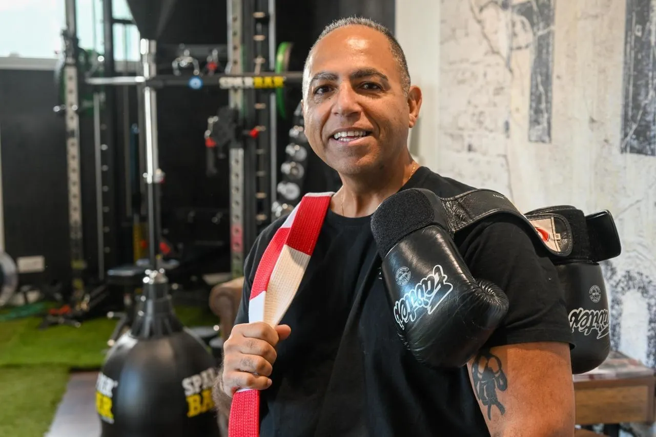 Bouchemaine, le 2 janvier 2025. Sébastien Château arbore la ceinture rouge et noire du 6e dan de full-contact. © CO - Laurent COMBET