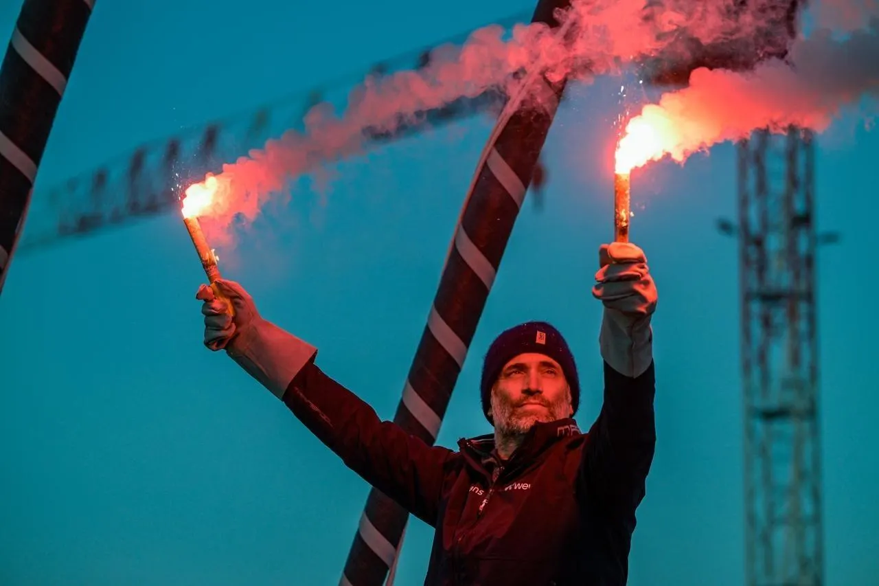 photo  fabrice amadeo lors de son arrivée à la 32e place du vendée globe aux sables-d’olonne, le 4 mars 2025.  ©  olivier blanchet / alea 3