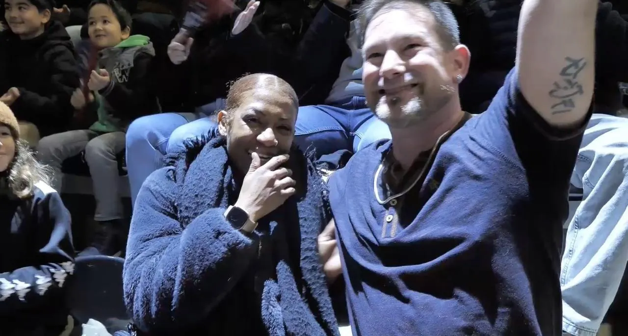 Accueil Sport « Mon cœur a dit oui » : à Angers, Jérémy prend à témoin 3 600 spectateurs pour faire sa demande en mariage à Chaïma
