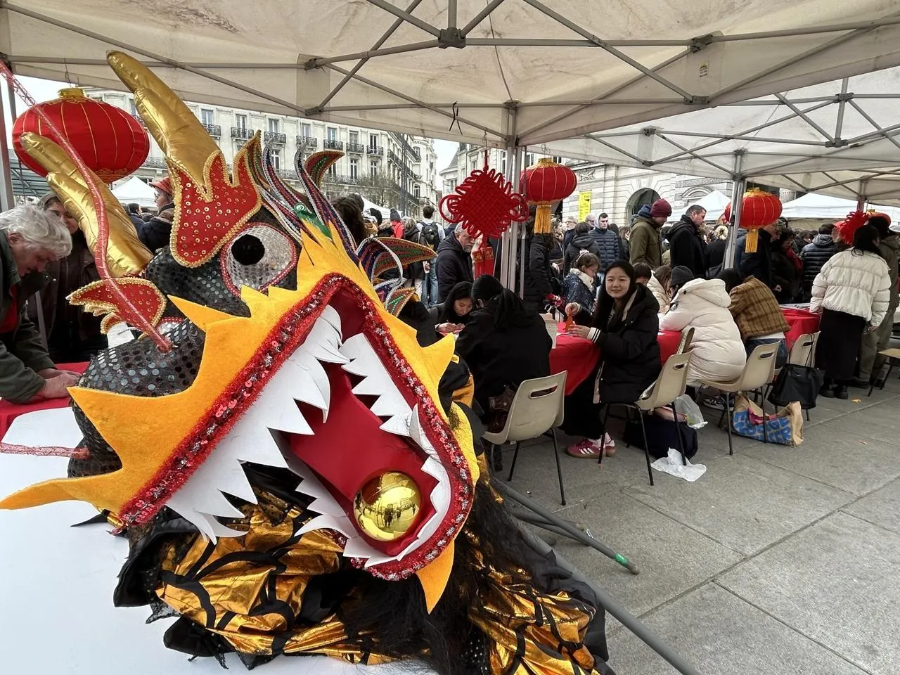 Angers, place du Ralliement, le 14 février 2026. Les démonstrations reliées à la culture chinoise se sont succédé au milieu des stands. © CO