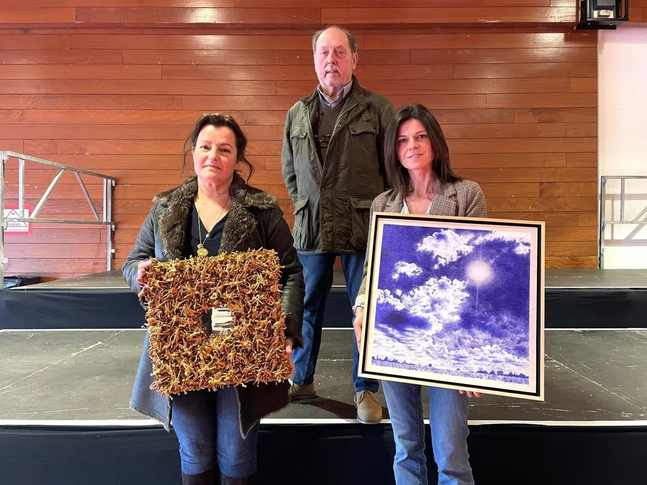 Francis Delaune, brocanteur, entouré de deux artistes, Sophie Chopin (à gauche) et Estelle Chauvin. Celles-ci exposeront lors de la 23e édition du Salon antiquités brocante, les 7 et 8 février 2026, au parc des expositions de Segré-en-Anjou Bleu. © Ouest-France