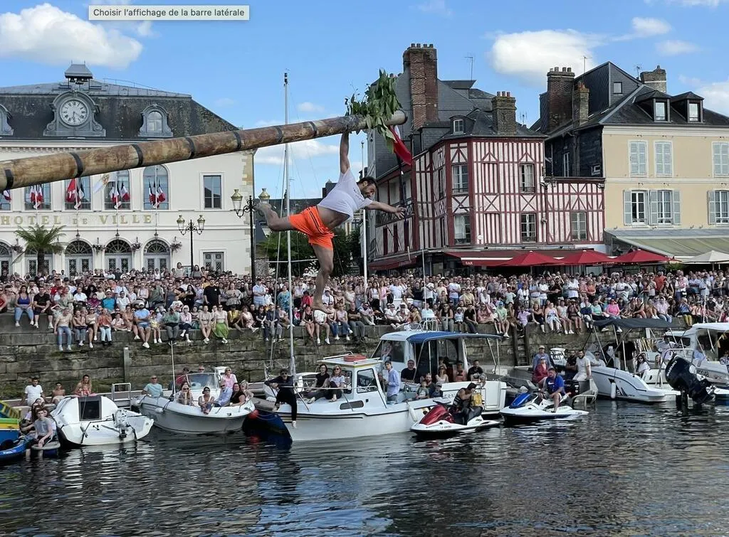 Point d’orgue des traditionnels jeux du 14 juillet à Honfleur (Calvados), l’épreuve du mât incliné promet de rassembler un public nombreux autour du Vieux Bassin. Voici tout ce qu’il faut savoir sur ce jeu rapporté de Sicile par les Normands au XIe siècle et devenu un véritable symbole du patrimoine honfleurais.