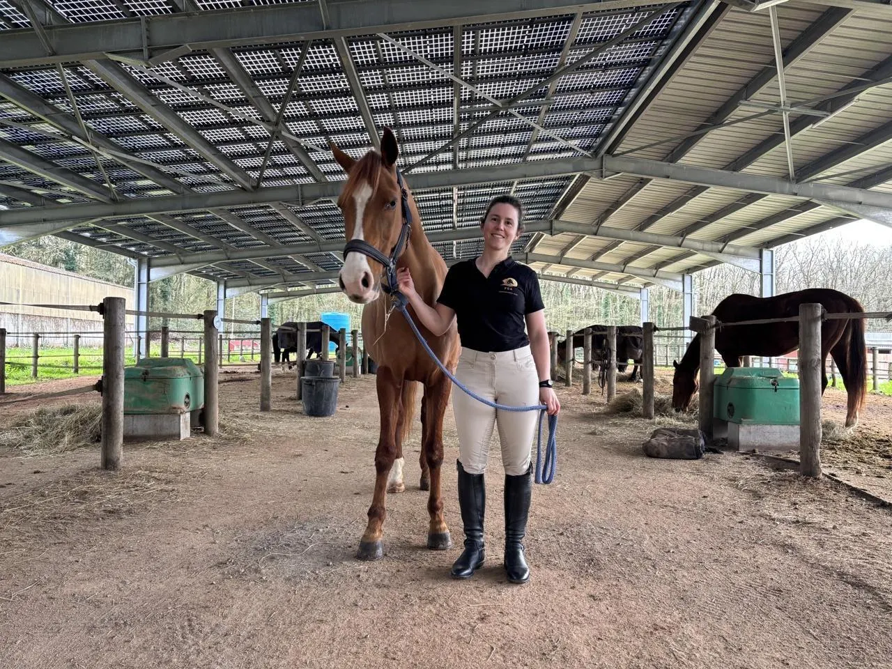 Morgane Treguier, à l’Éperon des Noues à Cholet (Maine-et-Loire), avec l’une des juments d’instruction nommée Amande. © Ouest-France