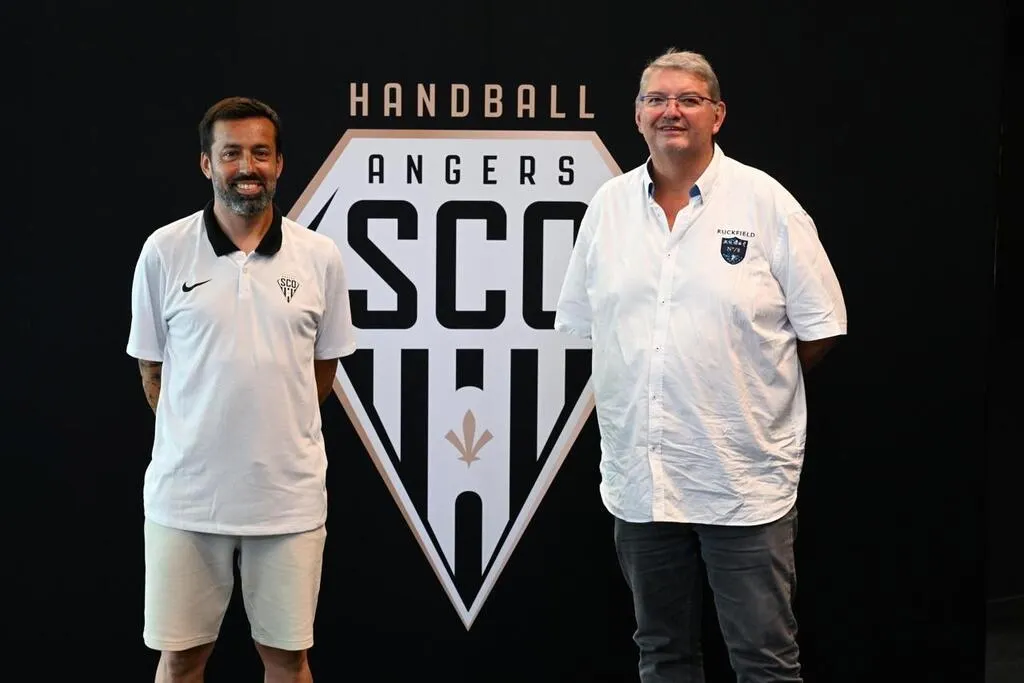 Joël Da Silva (nouvel entraîneur d’Angers Sco Handball) et Christophe Maniable (président d’Angers Sco Handball) peuvent préparer la prochaine saison en Proligue. © CO - Josselin CLAIR