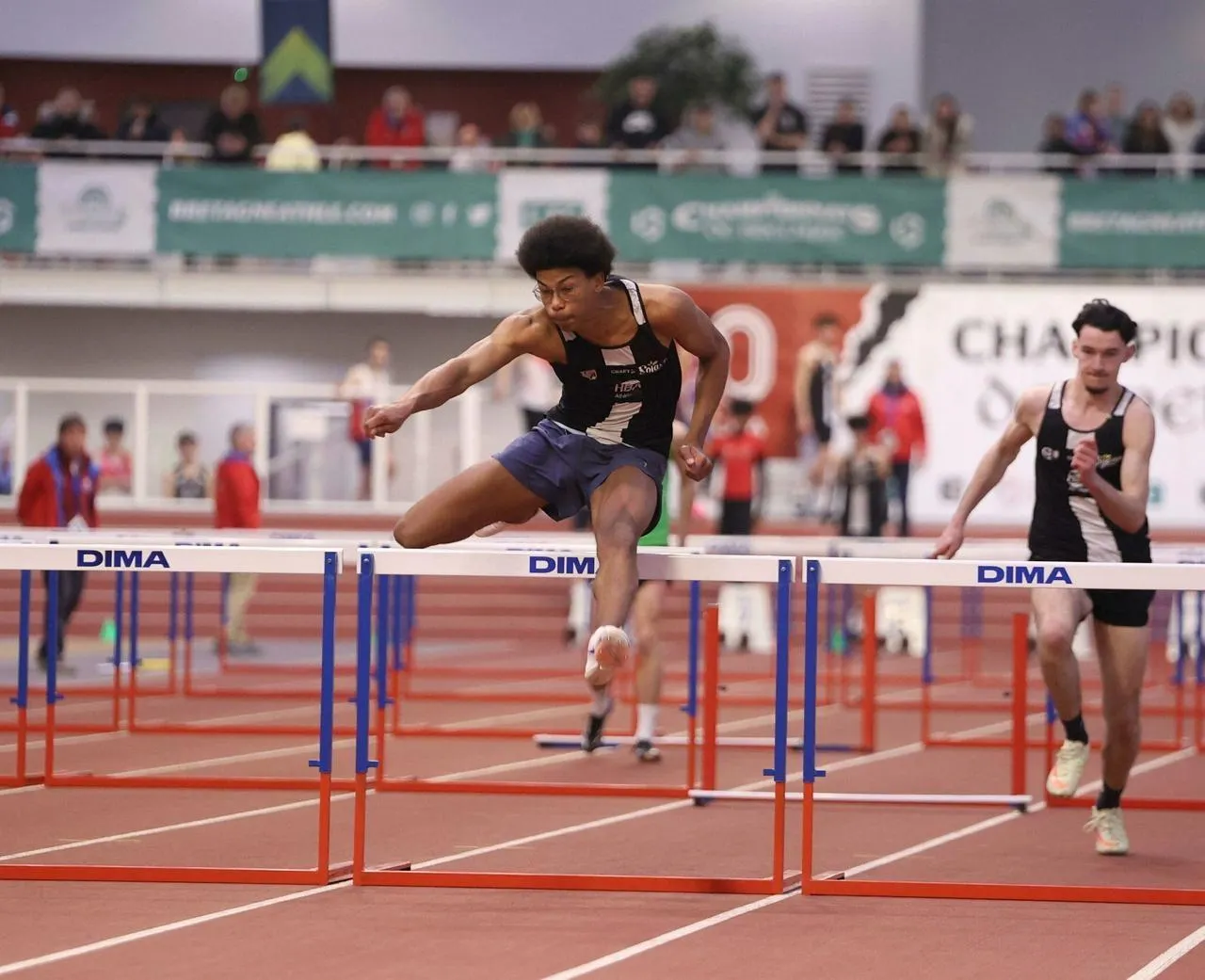 Mael-Bephassou Lannurien a remporté la médaille d’or du 60m haies des championnats de France U20 dans l’Eure, ce samedi 21 février. © Archives Gaëlle Germain