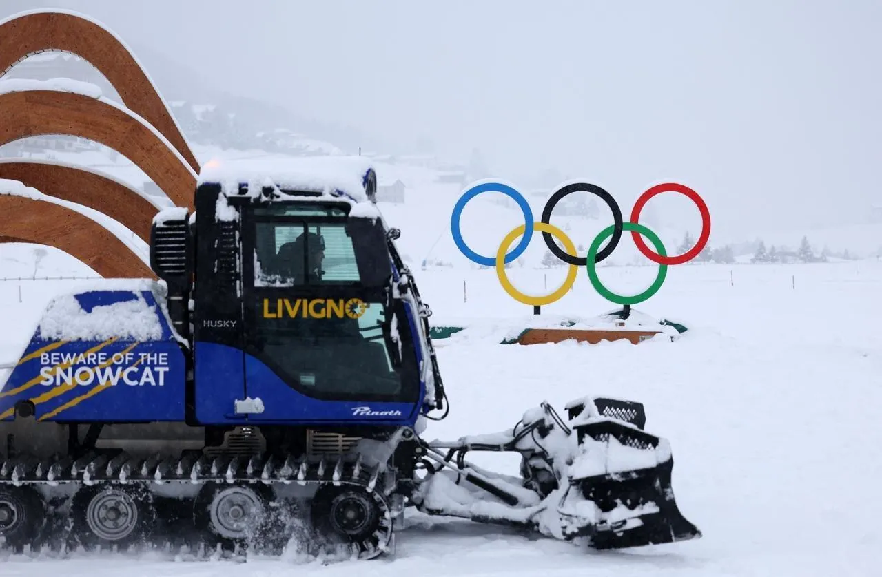 Les Jeux olympiques d’hiver vont devoir s’adapter face à un enneigement devenu plus aléatoire, en raison du changement climatique. Ici, un chasse-neige à Livigno (Italie), site de compétition des Jeux olympiques 2026, le 3 février 2026. ? © Photo : Kunihiko Miura/ The Yomiuri Shimbun via AFP