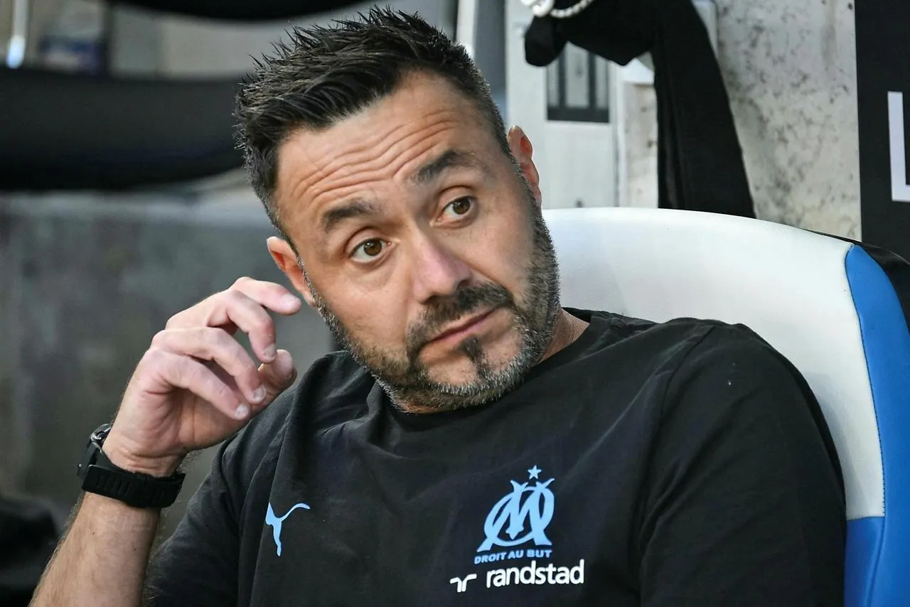 L’entraîneur de l’OM Roberto De Zerbi et son équipe ont connu un avant-match perturbé. © AFP