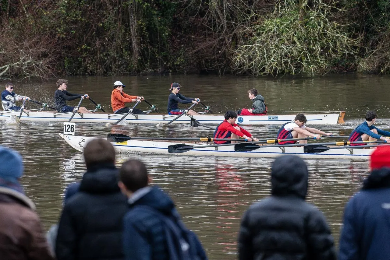 L’éclaircie tant attendue est apparue ce samedi 24 janvier, en fin d’après-midi, peu avant 16 h, sur les bords de l’Erdre. Avant cela, les jeunes rameurs U15, venus des quatre coins de la région, ont dû lutter contre un fort courant, le vent et de redoutables averses. En raison de ces conditions dantesques, les courses se sont finalement déroulées sur une distance réduite de 250 mètres.