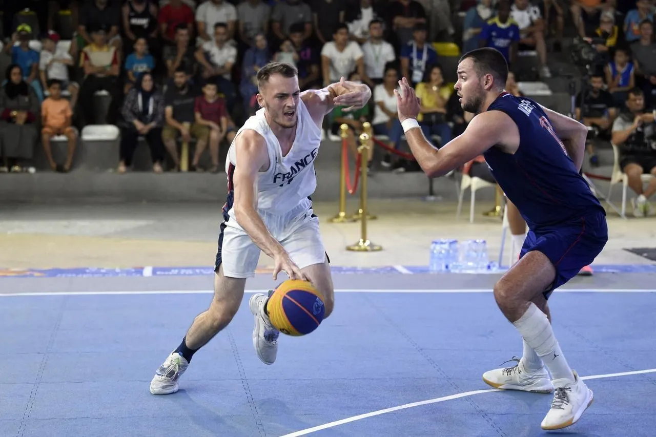 Lorenzo Thirouard-Samson, ici avec l’équipe de France 3x3, espère retrouver les Bleus cet été. © KMSP via AFP