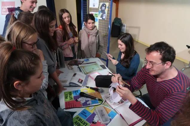 Pendant une heure et demie, ils se sont volontiers prêtés au jeu des questions en rafale. « Quelles sont vos sources d’inspiration ? Pourquoi avoir choisi d’être dessinateur ? Est-ce que ça vous rapporte beaucoup d’argent ? Pourquoi avoir choisi ce titre ? Est-ce que vous avez douté de votre travail ? Envisagez-vous une suite à l’histoire ? Quels conseils donneriez-vous à des jeunes qui voudraient écrire ?