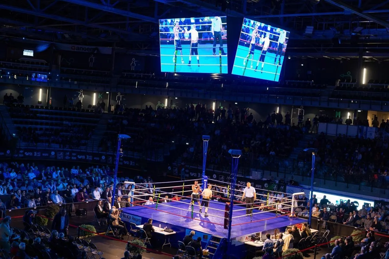 En 2022 la patinoire de l’IceParc était devenue le temps d’une soirée une salle de boxe pour le gala du Boxing Club Angers Saint-Aubin. © Mathieu Pattier / Ouest France