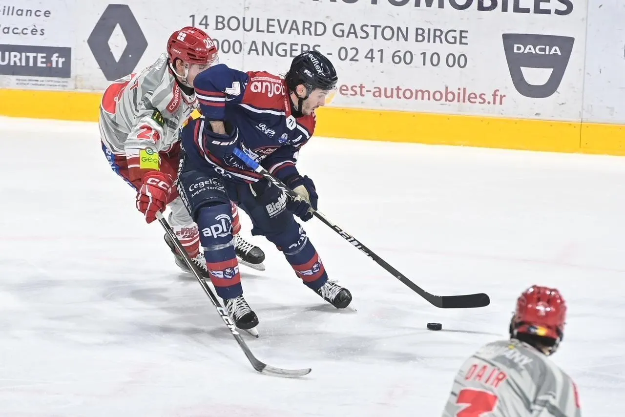 Grâce à leur succès (3-2) au match 6 de leur quart de finale, à Nice lundi 23 mars, les Ducs d’Angers ont validé leur billet pour les demi-finales de Ligue Magnus. Notamment grâce à une option tactique décisive. Et à une séquence folle d’efficacité. Ils seront opposés à Grenoble, leurs meilleurs ennemis de ces dernières saisons. Les Brûleurs de loups auront l’avantage de la glace. Sur laquelle la série commencera vendredi 27 mars.