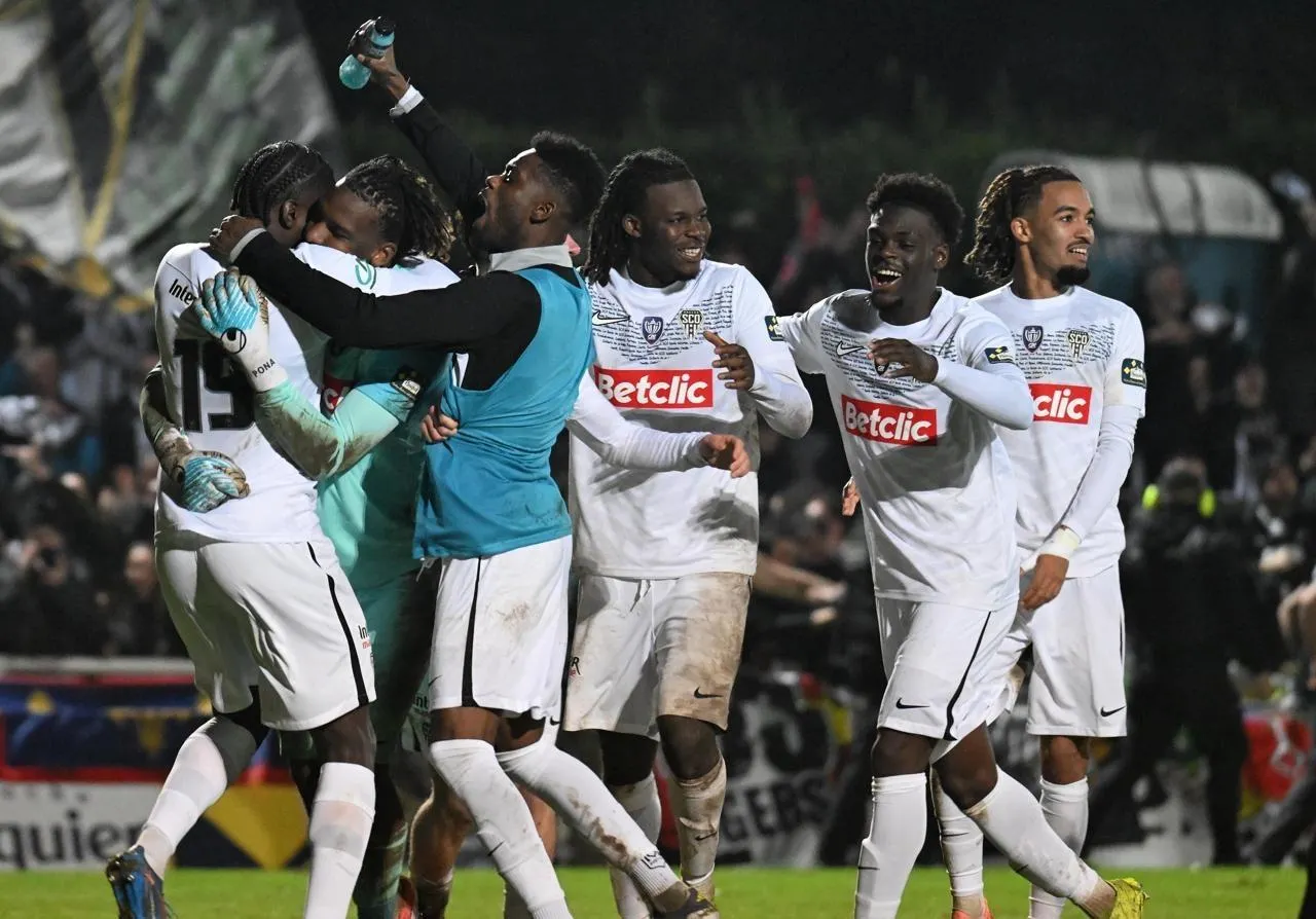 Les Angevins après la qualification en 16es de finale. Le Sco s’est sorti du piège contre Les Herbiers. © Jérôme Fouquet / Ouest-France.