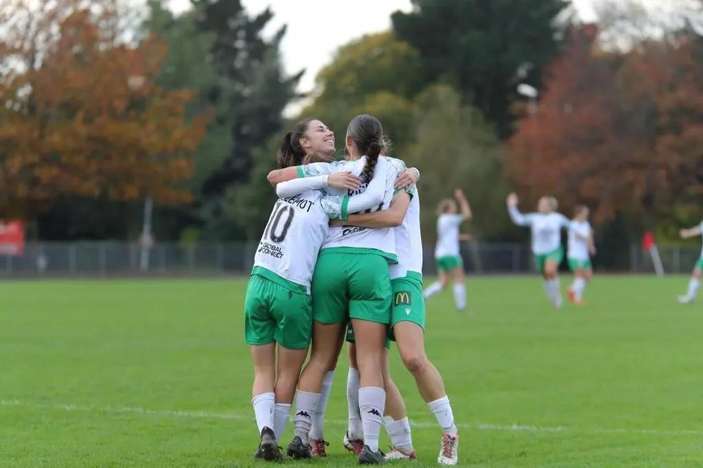 La joie des joueuses de la Croix Blanche, qui célèbrent un but de Candice Richou face à Caen le 10 novembre. © Philippe Naudin