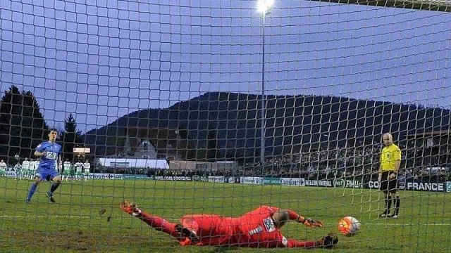 Après avoir stoppé un pénalty, Ruffier a chambré un joueur amateur de Raon-l'Étape. © AFP