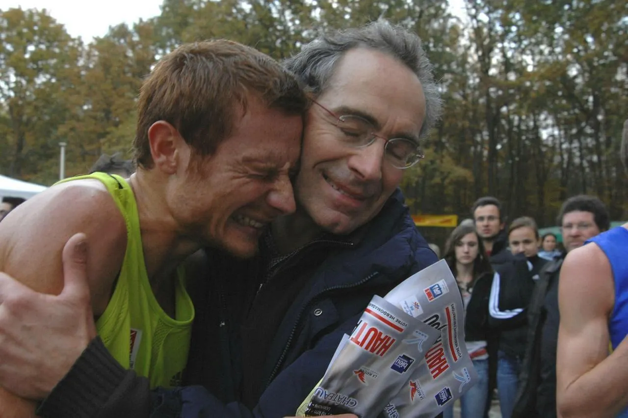 La victoire de Philippe Paillat dans la course des As en 2007. À l’arrivée, il tombe dans les bras de son père Didier. © Archives CO - Yolande MIGNOT