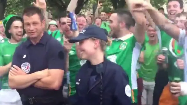 Des supporters irlandais draguent une policière française ! [VIDEO]... |