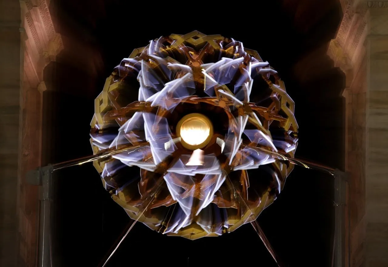 Les Dolomites présentées dans une boule à neige pendant la cérémonie. LINNEA RHEBORG / AFP