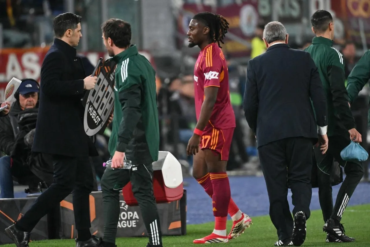 Le Français Manu Koné est sorti sur blessure lors de son huitième de finale de Ligue Europa qui l’opposait à Bologne (3-4). Le milieu de l’AS Rome était sélectionné par Didier Deschamps pour le rassemblement de mars.