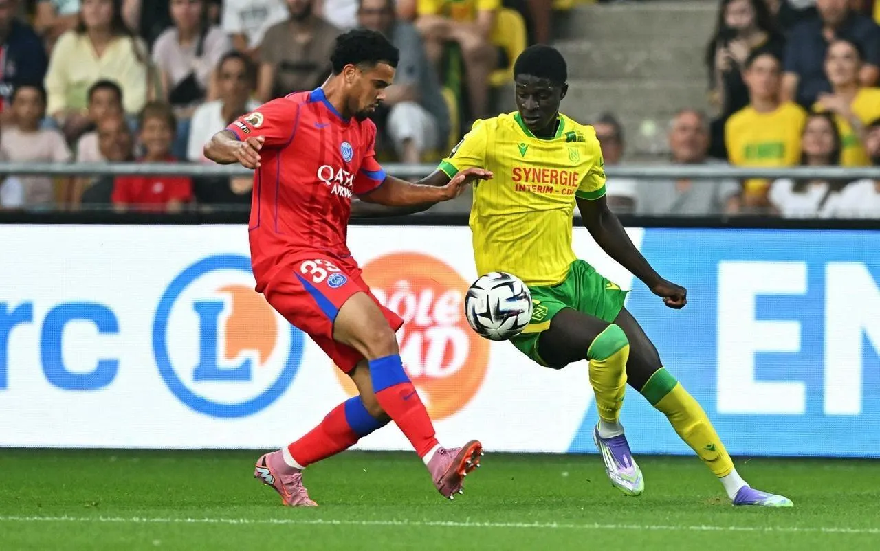 Herba Guirassy face au Parisien Zaïre-Emery lors du match aller perdu 1-0 par le FCN. © Franck Dubray / Ouest France